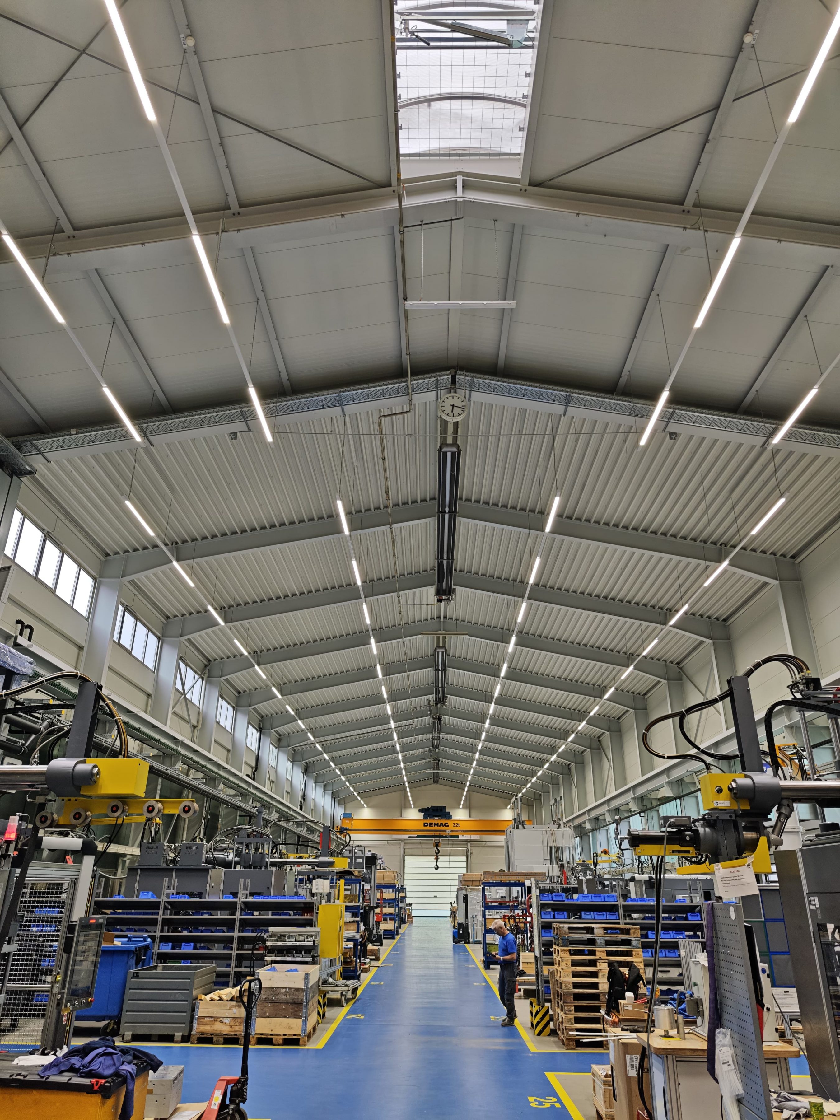 Reguläre LED-Hallenstrahler sind bis zu 70% energieeffizienter als Leuchtstoffröhren. Gleichzeitig sind LEDs langlebiger und bieten eine breite Auswahl an Farbtemperaturen sowie Lichtstärken. Dennoch bleiben ohne eine aktive Steuerung der Leuchten viele Einsparpotenziale in der Industriebeleuchtung ungenutzt. Beispielsweise verschwendet das reine An- und Ausschalten der Beleuchtung eine hohe Menge an Ressourcen, da nicht alle Arbeitsbereiche durchgehend und gleichmäßig ausgeleuchtet sein müssen.