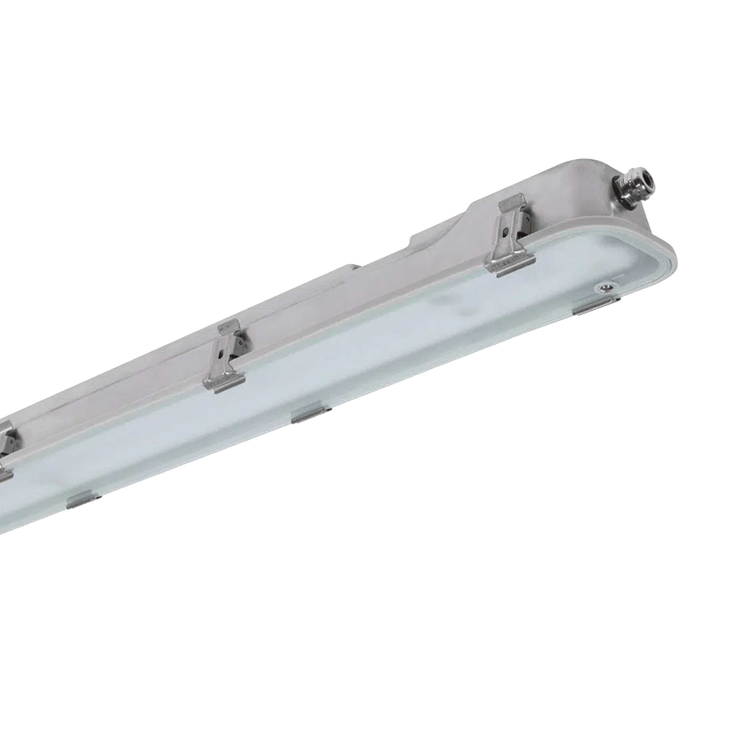 Die Leuchte erfüllt die Schutzart IP65 und ist somit staubdicht und gegen Strahlwasser geschützt. Sie eignet sich ideal für den Einsatz im Außenbereich sowie in anspruchsvollen und industriellen Umgebungen, beispielsweise in Produktionshallen, Parkhäusern, Lagerbereichen oder auf Sportanlagen..